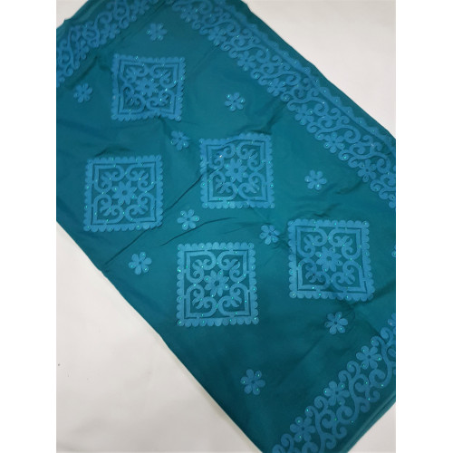 Turquoise Cotton Saree with Turquoise Aplik works throughout the Body and Achal/Pallu.Occasion: Casual/Party